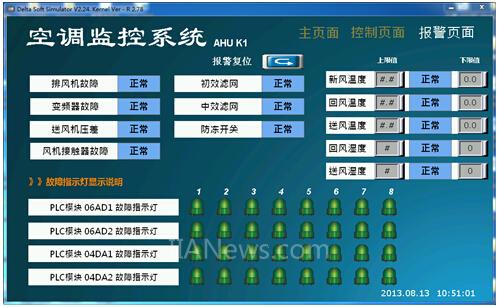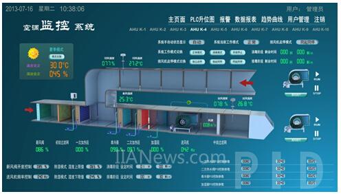 同時,監(jiān)控系統(tǒng)將會監(jiān)視新風(fēng)溫度,送/回風(fēng)溫濕度,送風(fēng)風(fēng)速,對超標(biāo)的環(huán)境參數(shù)進(jìn)行報警,并做電子記錄。對于空調(diào)箱和PLC、變頻器等設(shè)備的故障,監(jiān)控系統(tǒng)也將進(jìn)行監(jiān)控,以保證維護(hù)人員能夠及時有效地查看整個系統(tǒng)的運(yùn)行狀況,快速準(zhǔn)確地查詢和分析設(shè)備故障,保證系統(tǒng)正常運(yùn)行。