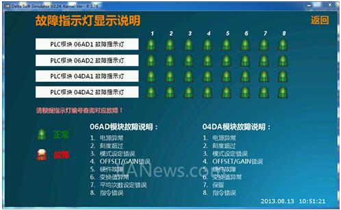 c) 當(dāng)PLC模擬量模塊出現(xiàn)異常時,對應(yīng)異常指示燈會由綠色變紅,以警戒當(dāng)前異常狀態(tài)