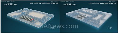 a) 此畫面為主畫面——樓層畫面1F、2F,按照現(xiàn)場CAD圖紙建模,與現(xiàn)場建筑結(jié)構(gòu)及空調(diào)箱位置高度一致;
