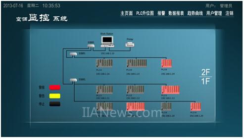a) 此畫面為PLC升位圖畫面,顯示整個監(jiān)控系統(tǒng)架構(gòu);