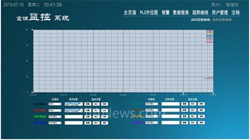 設(shè)有管理員、操作員及系統(tǒng)管理員三種登陸身份,輸入正確的密碼即可進(jìn)入監(jiān)控畫面。主畫面如下: