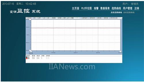 實(shí)時趨勢曲線畫面,可動態(tài)添加、刪除、隱藏變量曲線,對不同變量的變化趨勢進(jìn)行比較分析