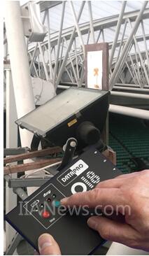雨過天晴,溫網(wǎng)球場上空的折疊頂棚徐徐打開,陽光夾雜著雨滴順著頂棚邊緣灑落在球場和觀眾席上。不久之后,工作近三個小時的人造光源-1000w的泛光燈,也將從頂梁上移走??此瞥R?guī)而平淡的操作,卻隱藏著巨大的安全隱患。