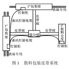 輸送皮帶控制一般用于散料到成品袋包裝系統(tǒng),中海石油天野化工(集團(tuán))有限責(zé)任公司散料包裝皮帶系統(tǒng)見圖1。