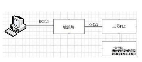 PC機跟觸摸屏通過232,采用MODBUS 協(xié)議進行連接。以達到監(jiān)控觸摸屏的狀態(tài)?;蛲ㄟ^透過觸摸屏PC機直接更改PLC里面的設(shè)置。使得控制更加方便。