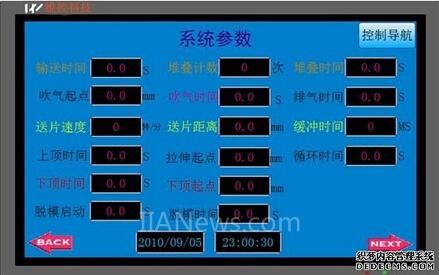 上圖可以看出:觸摸屏可以對輸送時間、上頂時間、拉伸起點等進行精確設(shè)置。