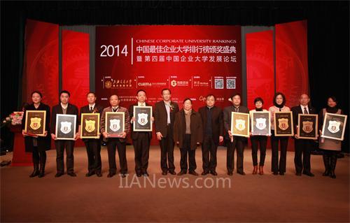 (左四)代表領(lǐng)取2014年度“中國最佳企業(yè)大學(xué)”獎(jiǎng)