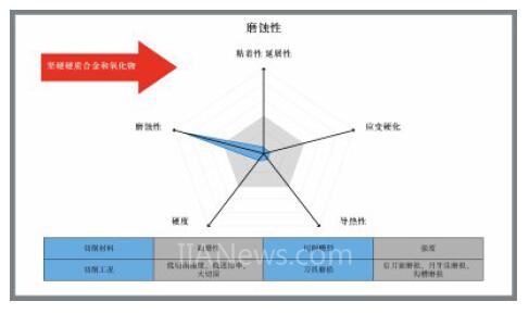 除了圖形顯示特定工件材料的綜合屬性之外,該系統(tǒng)還能根據(jù)五種基本屬性中的每一種屬性推薦適用的切削材料、槽型及切削工況。該系統(tǒng)還說明了典型的刀具磨損形式。