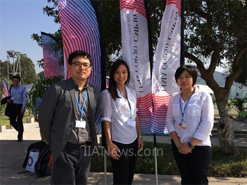臺(tái)達(dá)基金會(huì)三位氣候與能源專員(左起)謝雯凱,葉怡辰及吳郁娟于COP20會(huì)場留影