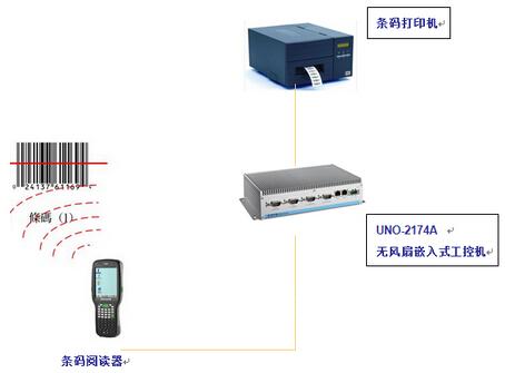 研華UNO-2174A無(wú)風(fēng)扇嵌入式工業(yè)電腦采用低功耗凌動(dòng)D510 1.66GHz處理器,具有能量之星認(rèn)證,IP40防塵及-10 ~ 70°C寬溫運(yùn)行等特性適合現(xiàn)場(chǎng)應(yīng)用。其接入設(shè)備主要是條碼閱讀器和條碼打印機(jī)。