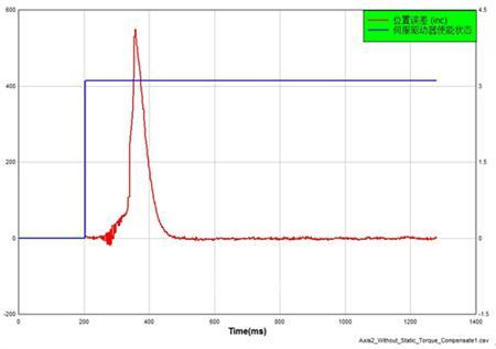 下圖是沒有開啟補償及振動抑制功能時,機器人的位置誤差,可以看到明顯的振動現(xiàn)象。