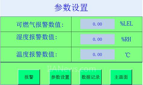 2、參數(shù)設(shè)置:設(shè)置氣體濃度,溫度,濕度報(bào)警的上限報(bào)警。
