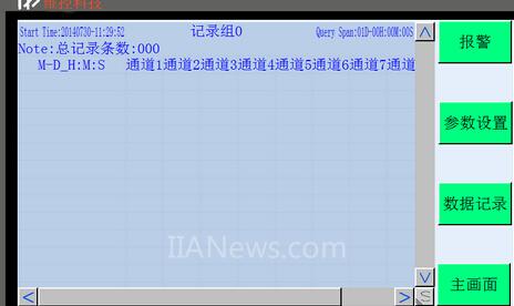 3、數(shù)據(jù)記錄:此畫面對(duì)各個(gè)通道以及溫度濕度進(jìn)行數(shù)據(jù)記錄,并把記錄的數(shù)據(jù)存儲(chǔ)在U盤里,可調(diào)出來查閱。