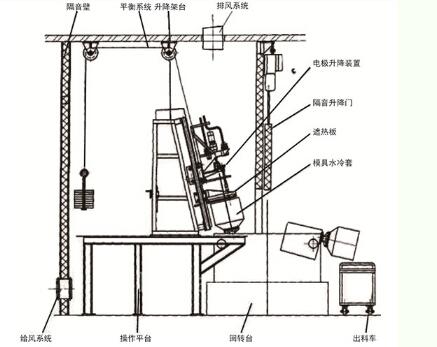 ?、鄢善烦鰻t:經(jīng)過30~40分鐘的熔制階段后,將電弧關(guān)閉,模具退出熔制爐;