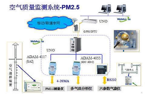 ADAM-4000在PM2.5空氣質(zhì)量監(jiān)測中的應(yīng)用架構(gòu)圖