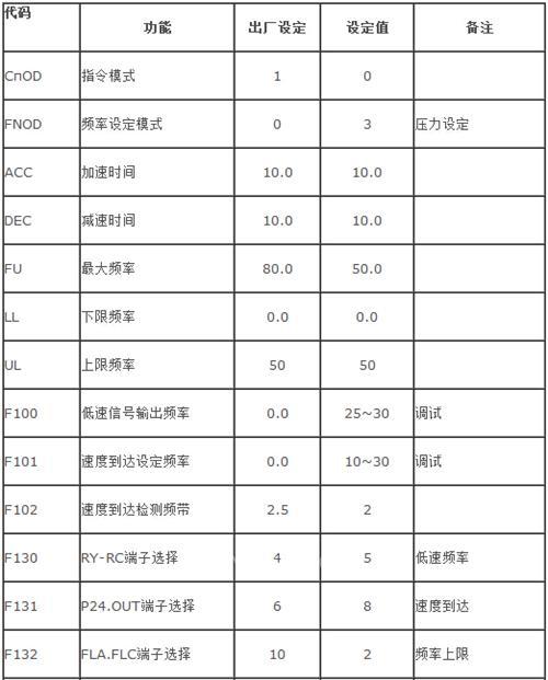變頻器主要參數(shù)設(shè)定見(jiàn)表1,具體應(yīng)根據(jù)系統(tǒng)的設(shè)計(jì)而定。
