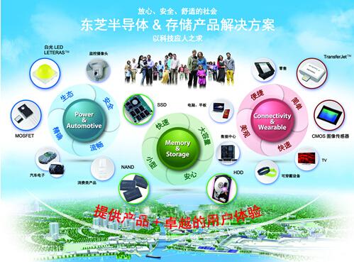 東芝集團(tuán)的經(jīng)營(yíng)范圍覆蓋從生活消費(fèi)品到支撐城市發(fā)展的基礎(chǔ)設(shè)施,尤其是在城鎮(zhèn)化建設(shè)日新月異的中國(guó),東芝在電力、樓宇,還有智能城市的建設(shè)方面不斷提出新的構(gòu)想。2014年,東芝提出了全新事業(yè)理念,“Human Smart Community by lifenology“(智社會(huì),人為本 以科技應(yīng)人類之求)。為了實(shí)現(xiàn)這一目標(biāo),東芝將“能源”、“存儲(chǔ)”、“醫(yī)療健康”作為其三大支柱產(chǎn)業(yè)。而其中半導(dǎo)體及存儲(chǔ)業(yè)務(wù),正以迅猛的增長(zhǎng)態(tài)勢(shì)展現(xiàn)出東芝雄厚的技術(shù)底蘊(yùn)和實(shí)力。