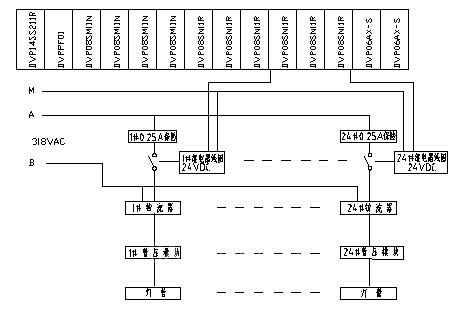(2)采用線圈電壓24VDC的外接觸點型繼電器來配合臺達公司DVP08SN11N模塊實現對318VAC信號頻繁通斷的控制;