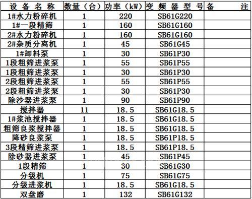 造紙生產(chǎn)線上的輔機(jī)很多,為節(jié)能基本都需要變頻調(diào)速。實(shí)踐已經(jīng)證明,造紙輔機(jī)實(shí)施變頻調(diào)速后,平均節(jié)能在12%,經(jīng)濟(jì)效益明顯。浙江富陽某造紙廠生產(chǎn)線上的部分輔機(jī)設(shè)備如下表: