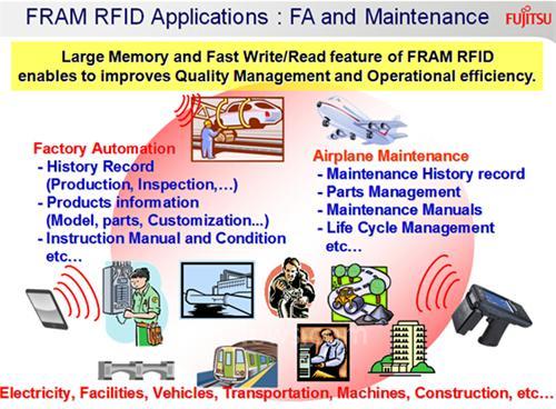 “如果要把生產(chǎn)線、流水線變快,那么RFID讀取速度也要變快。富士通半導(dǎo)體的118C就成功的運(yùn)用在這樣的領(lǐng)域。” 蔡振宇表示,“此外,將零件的維護(hù)信息和操作歷史數(shù)據(jù)記錄在標(biāo)簽內(nèi),還可飛躍性地提高飛機(jī)、基礎(chǔ)設(shè)施、土木等維護(hù)操作的工作效率。”