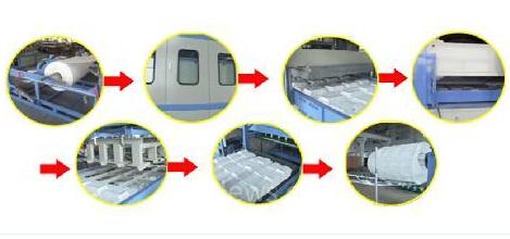 (1) 上料、片材進(jìn)成型機(jī):將發(fā)泡片材牽引至片材成型機(jī)的內(nèi)部,用光電開關(guān)控制上料長(zhǎng)度;