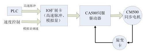 針對(duì)成型機(jī)的工藝要求,采用四方CA500伺服驅(qū)動(dòng)器與CM500同步電機(jī)為驅(qū)動(dòng)平臺(tái),設(shè)計(jì)了如下的應(yīng)用方案: