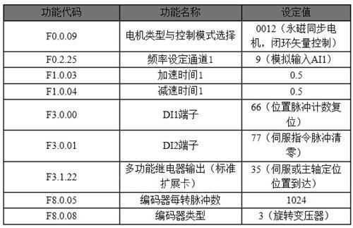 (2)選擇位置脈沖計(jì)數(shù)復(fù)位端子、伺服指令脈沖數(shù)值清零端子(功能號(hào)分別為66、77),例如選擇端子為DI1、DI2,那么F3.0.00=66、F3.0.01=77。