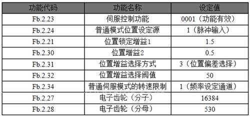 (1)位置增益選擇方式,當(dāng)按位置偏差選擇增益(Fb.2.31=3)時(shí),位置偏差小于設(shè)定的脈沖數(shù)值(Fb.2.32)時(shí),位置增益1(Fb.2.21)有效。否則位置增益2(Fb.2.30)有效。
