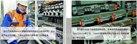 無螺絲連接組件在RWE集團的應(yīng)用已經(jīng)被證明是相當(dāng)可靠的選擇。這許多年來,60,000個夾持單元均采用了WAGO軌裝式接線端子和矩陣式接線模塊。所有的電氣安裝均會定期使用熱敏照相機進行檢查,其可探測到由接點故障導(dǎo)致的輕微的溫度上升?!拔覀円呀?jīng)使用WAGO彈簧式連接技術(shù)超過15年,迄今還沒有發(fā)生過一次故障。”Schramm確認(rèn)說?!耙郧埃覀冃枰磕赀M行一次螺絲釘緊固工作。后來使用無螺絲連接技術(shù)后,就避免了此項工作。今天,我們可以確定,無論是誰進行接線操作,均能保證牢固可靠的連接。此外,帶電部分也均帶有防觸電保護?!彼^續(xù)陳述WAGO產(chǎn)品的優(yōu)點。