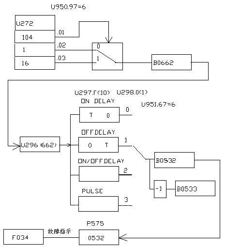 電機風(fēng)扇與變頻器聯(lián)鎖控制原理圖如圖2所示:由于選用的是變頻電機,電機帶強制冷卻風(fēng)扇,因此設(shè)計電機冷卻風(fēng)扇回路,同時也設(shè)計了電機與冷卻風(fēng)扇的聯(lián)鎖跳閘功能。當(dāng)風(fēng)扇故障時,檢測風(fēng)機反饋信號,延時間10秒,變頻器跳閘。通過使用兩個自由功能塊(U950.97和U297.F)對風(fēng)扇和變頻聯(lián)鎖功進(jìn)行編程。