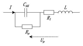 根據(jù)鋁電解電容的物理結(jié)構(gòu),可以用圖 1中所示的電路等效,其中CAK代表兩電極間的理想電容量;Rp 是并聯(lián)電阻,代表了電容的漏電流成分;Rl 代表了電容引出端及電極部分的串聯(lián)電阻成分;L 代表了引出線和連接處的等效串聯(lián)電感成分。