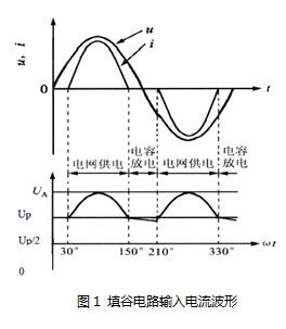 LN系列采用填谷電路進行設計,利用高壓陶瓷電容完美替代鋁電解電容,增加了整流管的導通角,使輸入電流波形從尖峰脈沖變得更接近正弦波,從而大幅度提高電源的功率因素(如表1所示),提高電源的轉(zhuǎn)換效率,更加利于環(huán)保節(jié)能,顯著降低總諧波失真。如圖1所示: