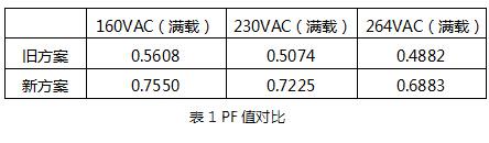 以下所有表中舊方案為采用電解電容的產(chǎn)品,新方案為采用填谷電路無電解電容的新產(chǎn)品