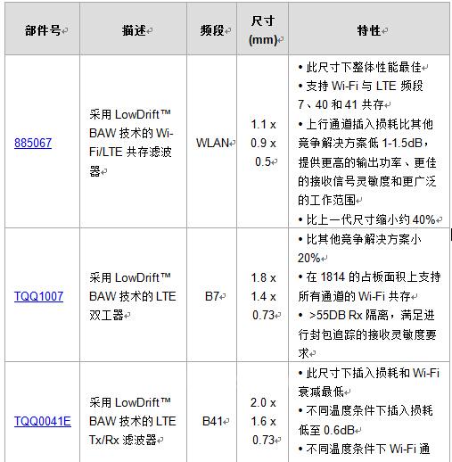 隨著性能要求日趨嚴苛和 RF 復(fù)雜程度不斷提高,Qorvo 專有的 LowDrift? 和 NoDrift? 濾波技術(shù)能夠解決業(yè)界最具挑戰(zhàn)性的 LTE 系統(tǒng)和芯片組問題?!霸谖磥頂?shù)年中,LTE-Advanced 將引進更復(fù)雜的載頻聚合和 MIMO 技術(shù),而 Qorvo 將致力于樹立性能和尺寸的業(yè)界標(biāo)準,”Qorvo濾波器解決方案部總經(jīng)理 Glen Riley 表示。“Qorvo 正在重新定義小尺寸濾波器的濾波性能,并實現(xiàn)無與倫比的溫度穩(wěn)定性,從而延長電池續(xù)航時間、減小插入損耗、減少服務(wù)中斷及降低掉話率。”