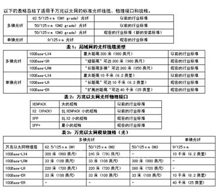 萬兆以太網物理接口的類型(例如10GBase-SR)