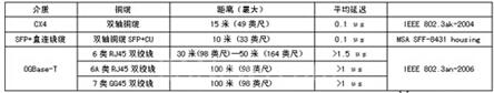 隨著交換標準的成熟和銅纜標準的改進,在萬兆以太網上使用銅纜變得越來越普遍。現(xiàn)在,萬兆以太網有三個不同的銅纜技術。每種都有不同的價格和性能(詳見表5)。盡管光纖(SFP+模塊)能提供最低的延時,但是許多IT部門還是使用銅纜來連接交換機到交換機或者交換機到服務器。