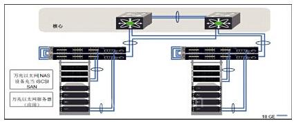 新標準——互聯(lián)網小型計算機系統(tǒng)接口(iSCSI)——使萬兆以太網成為SAN應用中具有吸引力和可供選擇的互聯(lián)介質。iSCSI是在大多數存儲設備和光纖通道中進行塊傳輸的SCSI協(xié)議的擴展。互聯(lián)網擴展的協(xié)議定義了在IP網絡上擴展塊轉移的協(xié)議,從而使標準的以太網基礎架構可以作為SAN存儲的互聯(lián)介質?;镜膇SCSI在現(xiàn)今的大多數操作系統(tǒng)中都支持。最新的iSCSI性能使萬兆以太網相對于光纖通道更能順利地成為SAN存儲的互聯(lián)介質: