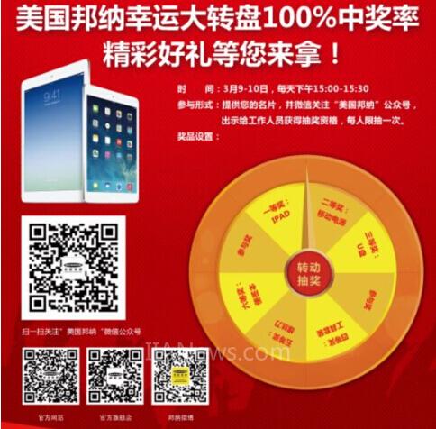 “快去邦納展臺(tái)抽Ipad大獎(jiǎng)!”