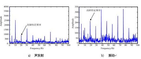圖3 軸承故障聲發(fā)射與振動信號的包縫譜對比