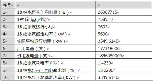 l B泵變頻消耗總電量=(250MW負(fù)荷下)B泵變頻器輸入側(cè)電流245A*額定電壓6 kV *1.732*功率因數(shù)0.98*13年B泵運(yùn)行時(shí)間7603h=18970391度;