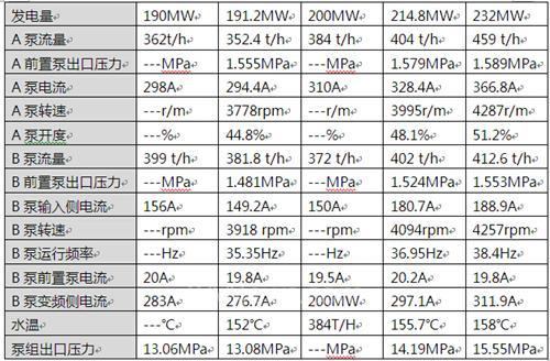 B電泵變頻運(yùn)行與A電泵工頻運(yùn)行參數(shù)