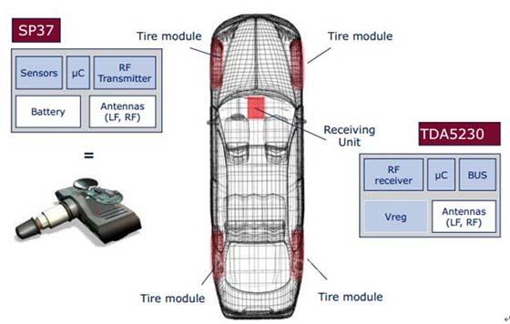 圖示3-大聯(lián)大品佳Infineon SP37的胎壓監(jiān)測解決方案系統(tǒng)頂層架構(gòu)模型