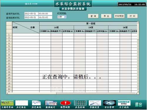 可以按照時(shí)間段和時(shí)間間隔,查詢每個(gè)電泵的電流、溫度等的歷史數(shù)據(jù)和實(shí)時(shí)數(shù)據(jù)。報(bào)表數(shù)據(jù)可以進(jìn)行導(dǎo)入、導(dǎo)出,打印、打印預(yù)覽等操作。