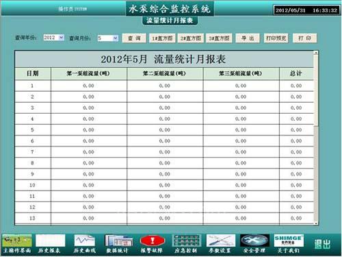自動(dòng)統(tǒng)計(jì)設(shè)備的出水流量。可以按天、按月、按年查詢,以報(bào)表形式或者直方圖形式顯示出來,以便分析設(shè)備在不同日期的運(yùn)行情況。