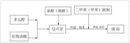 涂料樹脂反應釜控制系統(tǒng)通過泵將植物油酸、多元醇輸送到反應釜內(nèi),打開反應釜投料口,投入苯酐(順酐),使用導熱油對反應釜進行加熱,及脫水反應。反應預設定時間后,從高位缸加入二甲苯(甲苯)溶劑,一邊冷卻,一邊攪拌溶解,攪拌均勻后即可包裝為成品,整個反應過程為常壓。