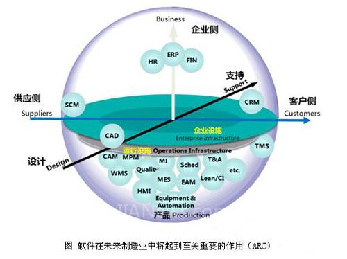 可以說,工業(yè)軟件技術支撐了絕大部分的生產制造過程。全球正在出現(xiàn)以信息網(wǎng)絡、智能制造為代表的新一輪技術創(chuàng)新浪潮。而在這一浪潮中,傳統(tǒng)的行業(yè)界限將消失,并會產生各種新的領域和業(yè)態(tài)。創(chuàng)造新價值的過程也因軟件系統(tǒng)而發(fā)生改變,產業(yè)鏈分工將被重組。這個新型的產業(yè)鏈將使制造業(yè)不再僅僅是硬件制造的概念,而將更多地融入軟件技術、自動化技術、現(xiàn)代管理技術與新的服務模式。