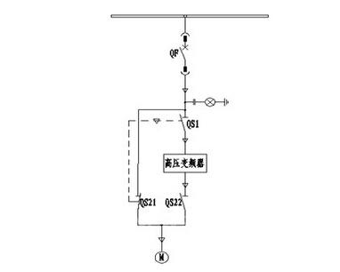 系統(tǒng)配備手動旁路柜中,共有3個高壓隔離開關(guān),為了確保不向變頻器輸出端反送電,QS21與QS22采用一個雙刀雙擲隔離開關(guān),實現(xiàn)自然機械互鎖。當(dāng)QS1、QS22閉合,QS21斷開時,電機變頻運行;當(dāng)QS1、QS22斷開,QS21閉合時,電機工頻運行,此時變頻器從高壓中隔離出來,便于檢修、維護和調(diào)試。