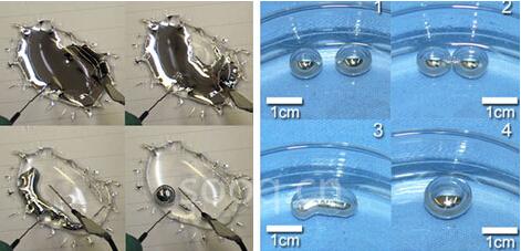 在清華大學(xué)教授劉靜的實(shí)驗(yàn)室中,出現(xiàn)了這樣一幕:電解液中,一張薄膜瞬間變?yōu)橹睆郊s5毫米的液態(tài)鎵金屬球,并在吞“食”0.012克鋁后,以每秒5厘米的速度移動(dòng),且其形態(tài)可以隨槽道的寬窄自動(dòng)變形調(diào)整,蜿蜒前行,整個(gè)過(guò)程宛如科幻影片中的液態(tài)金屬機(jī)器人“終結(jié)者”。