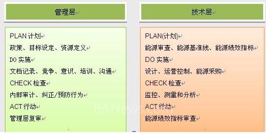 ISO50001能源管理系統(tǒng)架構(gòu),其標(biāo)準(zhǔn)設(shè)計(jì)兼容ISO9001、ISO14001等標(biāo)準(zhǔn)。PDCA,,即Plan-Do-Check-Action的戴明循環(huán),這包括了兩個(gè)大的PDCA循環(huán)過(guò)程,一個(gè)是對(duì)管理層,一個(gè)是技術(shù)面。