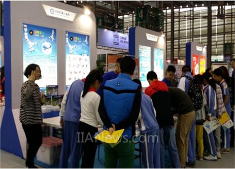 “足球要從娃娃抓起”,“機器人也要從娃娃抓起”,中科機器人教育的展臺前擠滿的小朋友。